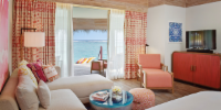 Виллы расположены на сваях в лагуне. На вилле: двуспальная кровать размера «king-size», угловой диван, ванная комната на открытом воздухе с «тропическим» душем и большой ванной, гардеробная, большая терраса с обеденным столом, зоной отдыха, шезлонгами, гамаками, спуск в лагуну. Вид на океан и на восход. Возможно размещение 1 доп. кровати (платно).
