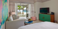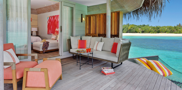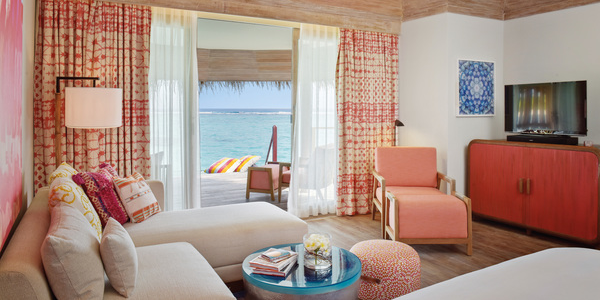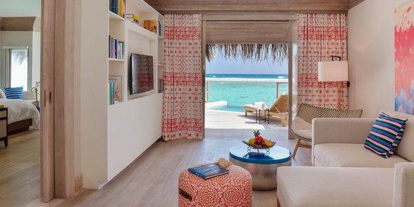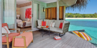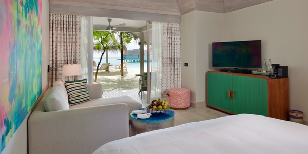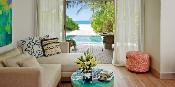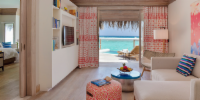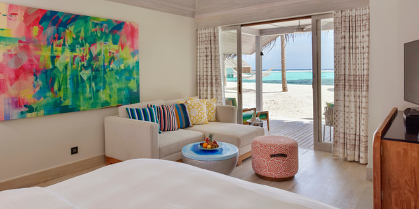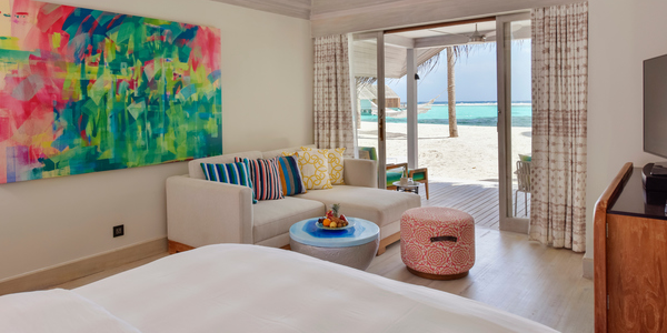 Вилла расположена на пляже, в окружении тропических садов, в нескольких шагах от лагуны. На вилле: 2 спальни (в каждой кровать «king-size» и угловой диван), 2 ванные комнаты на открытом воздухе (каждая с большой ванной и отдельным «тропическим» душем), 2 гардеробные, просторная гостиная с обеденным столом, террасы с обеденным столом и зонами отдыха, газебо. Выход на пляж с шезлонгами. Вид на океан и на восход. Возможно размещение 2 доп. кроватей (платно). Дополнительные привилегии: 1 круиз на закате, 1 обед в ресторане Drift (расположен на частном острове) или 1 частный киносеанс под открытым небом, 4 бутылки воды Pure by Sun Resorts (ежедневно).