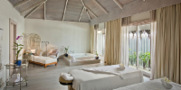 Вилла расположена на пляже, в окружении тропического сада, в нескольких шагах от лагуны. На вилле: 3 спальни (в каждой кровать «king-size» и угловой диван), 3 ванные комнаты на открытом воздухе (каждая с большой ванной и отдельным «тропическим» душем), 3 гардеробные, просторная гостиная с обеденным столом, террасы с обеденным столом и зонами отдыха, собственный бассейн, газебо. Выход на пляж с шезлонгами. Вид на океан и на восход. Возможно размещение 3 доп. кроватей (платно). Дополнительные привилегии: 1 круиз на закате, 1 обед в ресторане Drift (расположен на частном острове) или 1 частный киносеанс под открытым небом, 6 бутылок воды Pure by Sun Resorts (ежедневно).