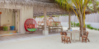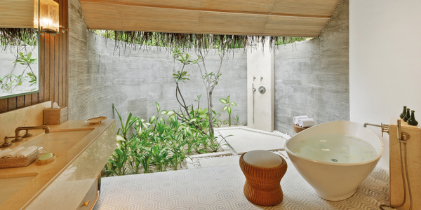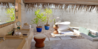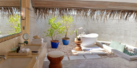 Виллы расположены по обе стороны острова, на пляже, в окружении тропических садов, в нескольких шагах от лагуны. На вилле: двуспальная кровать размера «king-size», угловой диван, ванная комната на открытом воздухе с большой ванной и отдельным «тропическим» душем, гардеробная, крытая терраса с обеденным столом. Выход на пляж с шезлонгами. Вид на океан и на восход или закат. Возможно размещение 1 доп. кровати (платно).